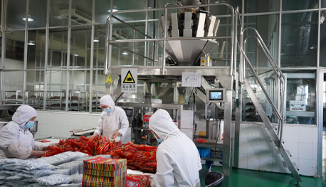 炒制牛肉制品的組合烘干箱、給袋式真空包裝機、機器人碼垛機等一系列具有開創性的設備